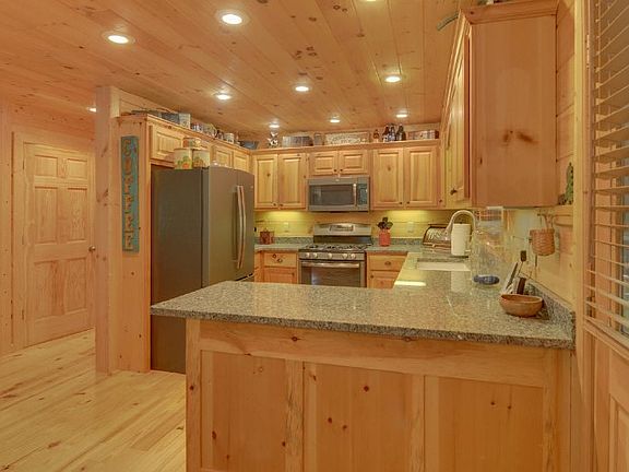 DON'T MISS THIS GEM IN THE MOUNTAINS! Located in the Aska Adventure Area, conveniently situated 25 minutes outside Blue Ridge on private road and 2 mi. from Toccoa River, this meticulously maintained cabin has it all. This 3 BR, 3 Ba., offers a bedroom & bath on each floor, gas stack rock FP. on main floor, full sized W/D connections, screened porch off master BR. Over $50K in upgrades include an amazing outdoor Kit. complete with hard line gas grill, Primo smoker, stove & refrigerator, perfect for those fall football games. Granite countertops throughout the whole house, new GE appliances, screened porches on 2 levels, wraparound deck on main, outdoor fire pit, on 2.15 ac usable land. Perfect to build a sep. garage or other sm cabin.This home wont last!