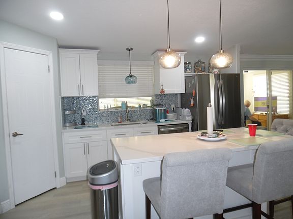 *This home offers a free 1 year warranty. Gorgeous, recently updated 2280 Sq. Ft. home. Four bedroom or three bedroom with office, two bath home. This home has it all and is move in ready. Large kitchen with plenty of cabinets, island, quartz countertop, sea glass back splash and all two year old stainless appliances. All rooms are all very good size. Many built in cabinets and shelving in the huge family room, dining room and office. Laminate flooring, plantation shutters and crown molding throughout home. AC rebuilt in 2024. Beautiful lanai on rear of home with windows and laminate flooring. Nice flower beds with seashells and curbing. Private driveway, carport and extra large shed. This is a must see home, being sold at a fantastic price, for this size home with all the upgrades. Come take a look at this home today! You will not be disappointed! *Terms and conditions apply