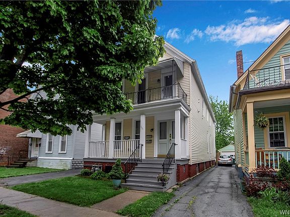 Beautifully updated 3/2 double in excellent West Side location! Multitude of updates include new windows, tear off roof in (2019), HE furnaces, hot water tanks, central A/C, electric, and plumbing (2019). Bright, gleaming hardwood floors throughout. First floor eat-in kitchen with breakfast room/den, gas stove, quartz countertops, and In Unit Laundry! Updated bath features glass stall shower. Second floor unit (with separate tenant entrance as well as front door entrance) boasts kitchen w/ beautiful exposed brick, updated bath, and walk out to lovely porch. Third bedroom converted to laundry. Great utility storage in large shed and parking area behind house. Walk to 5 points and Allentown as well as Elmwood attractions!