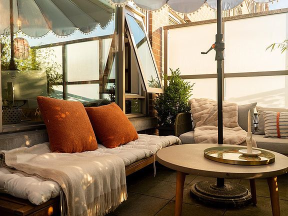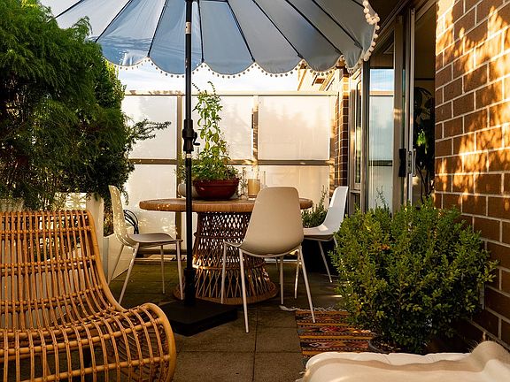 Wide-plank floorsFloor-to-ceiling glassCustom upgradesDesigner wallpaperSculptural lightingGracefully arched frameSoften the terrace edge