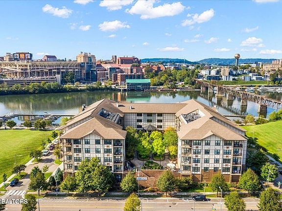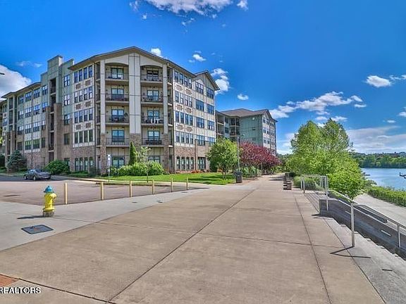 This property offers luxury waterfront living in one of Knoxville's most desirable communities. This ground-floor condo features soaring 14-foot ceilings and 8-foot windows, a rare feature not found in upper-level units. Inside, you'll find hand-scraped hardwood floors throughout and a stunning kitchen with upgraded cabinetry, granite countertops, under-cabinet lighting, and a travertine backsplash. The spacious primary bedroom includes a spa-like bathroom with a custom tiled walk-in shower, garden tub, and double-sink granite vanity. The open family room leads to an oversized private patio one of only a few units approved for outdoor grilling. Residents enjoy access to outstanding CityView amenities including an outdoor pool, fitness center, clubhouse, courtyard with fireplaces and grills, bike and kayak storage, and marina access for water and boat activities. The property connects to the greenway for easy walking or biking to downtown Knoxville and UT sporting events, with beautiful city and waterfront views along the way. Additional conveniences include a secured guest entrance, and a personal stairwell leading one flight down to your designated parking space, trash and recycling area, mailboxes, and elevator access to the front desk, fitness center, and pool.