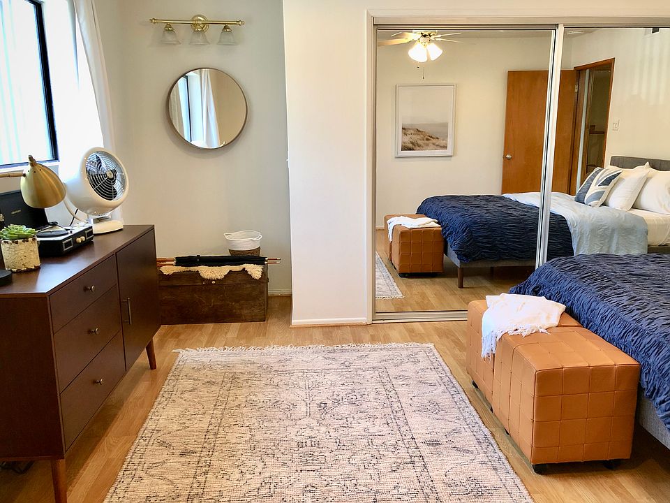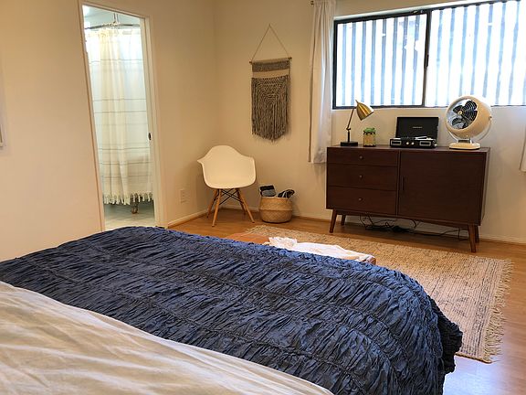 Charming, sun-filled, airy home. Lower unit of duplex. Large outdoor patio and yard. Elevated ceilings, bamboo wood floors, massive master bedroom, full master bath, office space. Open dining and living room. Fully furnished with TV + streaming. Utilities paid (includes high speed internet). Kitchenette (small fridge, stovetop, microwave, toaster over (no large oven). A short walk or bike ride to beach, Abbot Kinney, cafes, restaurants, yoga etc. 2 blocks to park, tennis, dog parks. Quiet neighborhood.