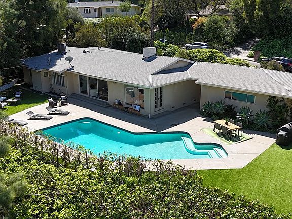 Welcome to 4450 Coronet Drive, an expansive, single-story ranch retreat nestled on a quiet street in the heart of Encino Hills. Just moments from Ventura Boulevard's vibrant dining, shopping, and entertainment scene, with quick access to Mulholland and the Sepulveda Pass for an easy Westside commute, this home offers the best of both worlds.Set on an impressive 15,000+ sq ft lot, this mid-century gem spans over 2,500 square feet and features a spacious, family-friendly layout that effortlessly blends iconic 1950s design with the California indoor-outdoor lifestyle.Flooded with natural light through floor-to-ceiling glass, the main living area showcases green views from every window. A large living room with vaulted ceilings and sliding glass doors opens directly to the backyard, creating a seamless entertainer's flow. The separate dining room offers a picture window framing the San Fernando Valley, French doors to the patio, and a custom built-in hutch.The galley-style kitchen with an eat-in breakfast nook is ready for your vision, an ideal space to design your dream kitchen. There are three over-sized bedrooms plus a generously sized den or office that could easily serve as a fourth bedroom. Ample closet and hall storage space add to the home's practical appeal.Newer hardwood floors and a freshly painted interior provide a clean, move-in-ready canvas. Step outside to a private backyard oasis featuring a sparkling pool, multiple patios for entertaining, and two artificial turf areas perfect for play, lounging, or enjoying the peaceful, lush surroundings. Take in sweeping Valley views and enjoy a front-row seat to the 4th of July fireworks show.Additional highlights include a detached two-car garage with a covered breezeway leading directly to the kitchen. Fireplace is decorative only and has not been used by the sellers.Offered as-is, this is a rare opportunity to capture a slice of mid-century magic and re-imagine it into your next-generation dream home.