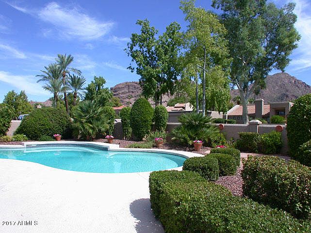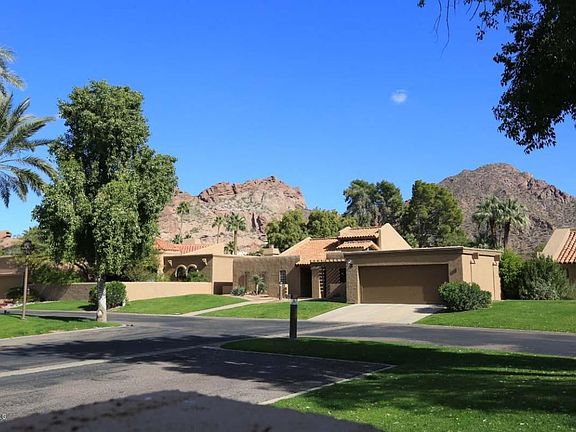 Beautifully remodeled home in the highly sought after Village gated community boasts breathtaking views of Camelback Mountain, vaulted ceilings, granite countertops and travertine flooring. The large family room, kitchen and patio make it an entertainer's dream house! With freshly painted walls and new carpet, this charmer is move-in ready. Bonus: This home is detached and all on one level--NO STAIRS! Within walking distance to the Village Racquet Club, AJ's Fine Foods and many shops and restaurants. Don't pass up this RARE opportunity to live in the Village!