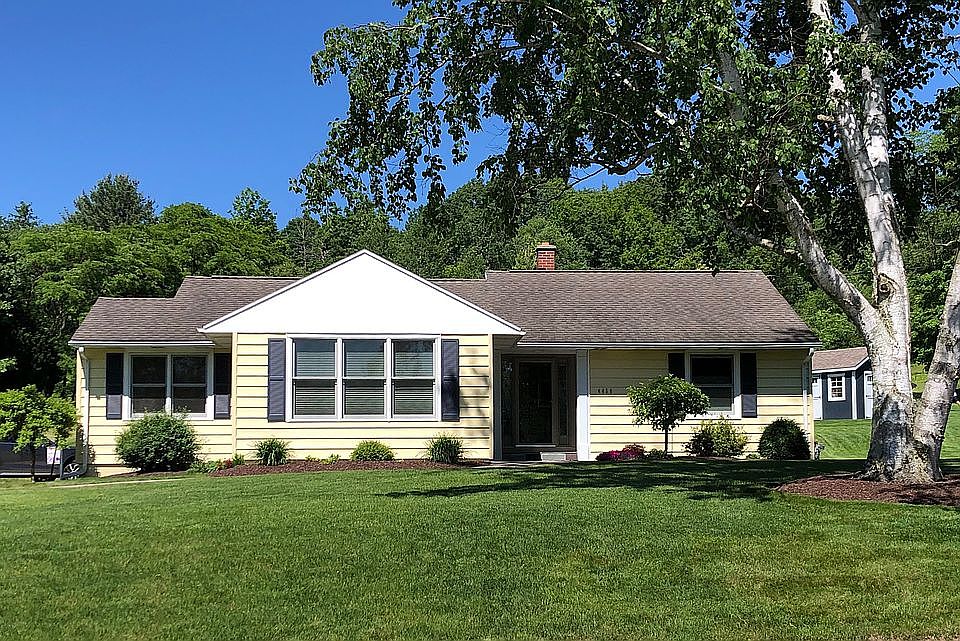 Meticulously maintained 2-bedroom, 1-bathroom home in a friendly rural setting. Built in 1958 but renovated throughout, it would make an excellent starter home or is perfect for downsizing. Updated kitchen features cherry shaker cabinetry, large island, granite counter tops, stainless appliances, and gas cooktop. Great open concept living with a mixture of refinished oak hardwood flooring and coordinating porcelain tile. Renovated bathroom features radiant heated floor, glass enclosed walk-in shower with jets and separate bathtub. All windows have been replaced (Marvin/Anderson) and are tilt-sash. There is recessed lighting throughout, with many upgraded LED units. Semi-finished basement features laundry, workshop, exercise, recreation, and utility rooms. A new boiler was installed in 2018 and a 200 AMP breaker electrical service was installed in 2010, with a generator transfer box. Outdoor living includes an expansive bi-level composite deck with natural gas quick connect for the grill and a generous back yard. The concrete drive accommodates two car parking near the house, with stamped concrete at front/rear entries. A 1 ½ bay garage and cute shed provide for ample storage for lawn mower, bikes, kayaks, etc. A new 1500-gal septic system, D-box, and leach field was installed in 2023. Easy access to NY I-90 and I-86 (less than an hour drive to Buffalo or Erie PA). Call or text Laurie at 716-485-8671 or Douglas 716-640-4450.