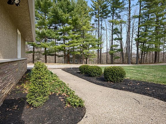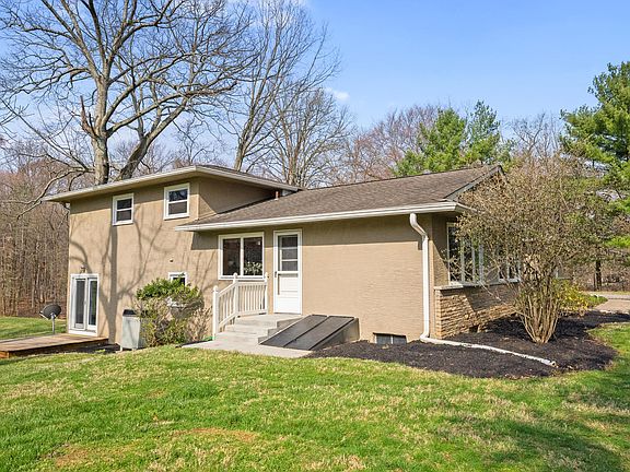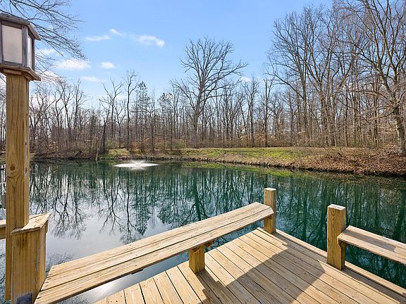 Gorgeous wooded ravine setting backs to city nature preserve with a large well kept fully stocked pond with dock and fountain. This 3 bedroom 2 and half bath split has a wall of huge windows and stone fireplace in greatroom overlooking pond and ravines.Spacious family room, dining room and kitchen have wonderful nature views too. Updated baths, lots of beautiful wood floors thruout. Large new two story pole barn with huge loft, water and electric and covered patio for cookouts or parties. Large two story turn of the century cabin also on property that is in the midst of remodel It could be play house /art studio