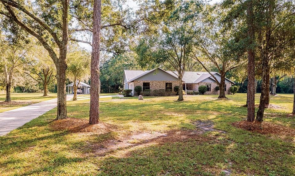 CUSTOM brick-accented home, situated on 2.4 acres......with a DETACHED WORKSHOP & CARPORT!!! METAL ROOF IN 2004, NEW A/C IN 2021, many double-paned windows, NEW WATER HEATER IN 2025, and in mint condition!! BEAUTIFUL FIREPLACE upon entering the front door......vaulted ceilings, skylights, wainscoting, SPACIOUS ROOMS, HUGE kitchen with an island and a built-in workstation. We have outlets in the island and the formal dining is also oversized. ALL APPLIANCES WILL STAY, EVEN THE WASHER & DRYER. The Owner's Suite is tucked down its own mini hall......boasts TWO closets (1 being a big walk-in), and a private bath with dual sinks, a stand-up shower, & a soaker tub. Beds 2 & 3 have NEW CARPET, a HALF BATH is convenient for guests, & our Laundry room is INSIDE! There are extra hall closets, newer blinds, marble sills, gutters, an active TERMITE BOND, & a PHENOMENAL FLORIDA ROOM. Comprised of many windows, a cedar ceiling, central a/c.........this room could be an amazing den, office, crafts or hobby space, & would make that superb additional gathering area for family & friends. The garage has a SIDE ENTRY, is larger than most, offers a utility sink, a bump-in nook for storage, & there is also a GENERATOR OUTLET IN PLACE. STORM BOARDS WILL STAY WITH THE HOME FOR WINDOW/DOOR PROTECTION. This garage & the DETACHED workshop both have door openers. Our WORKSHOP has a NEW ROOF AS OF THIS YEAR........there is shelving, lights/power, & benches. The property is GORGEOUS!! Mature Oaks, Maples, & Pines add great shade and panoramic views. LOOKING TO SPLIT THE PARCEL & BUILD ANOTHER HOME?? That possibility may exist......there is approximately an acre on the west side of this property that could make another homestead or offer the space for a second home. Please ask your Realtor for more info and/or Osceola County agencies. Location is IDEAL......the FL Turnpike is within 4+ miles, OIA is within 22+ miles, East Coast Beaches in 49+ miles, our famous attractions within 28+ miles, downtown St. Cloud shops/eateries & lakefront park in 6+ miles, & Lake Nona is within 18+ miles. NO HOA, NO CDD, NO WATER BILL.........ONE-OWNER & METICULOUSLY MAINTAINED. Not many on the market, make sure to book your private showing to see all we have to offer.