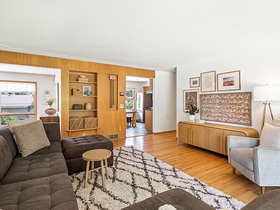 Step inside this must-see, well preserved, midcentury modern brick rambler. As soon as you enter you are welcomed by large, south facing windows, filling the home with light. Living room features classic paneling and ceiling details. The kitchen is steeped in character featuring original cabinets, back splash, and pink oven and cooktop. The dining room features a beautiful floor to ceiling fireplace and large picture windows looking out over the backyard. Three beds on the main floor plus full bath with original tub and tile.