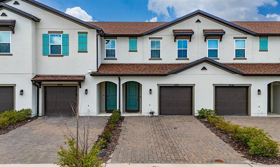 LIKE NEW – in Pristine Condition! Welcome to this beautifully designed open-concept townhome where the living, dining, and kitchen spaces flow seamlessly—perfect for everyday living and entertaining. The chef-inspired kitchen features quartz countertops, 42” upper cabinets, and sleek stainless-steel appliances. Enjoy the upgraded first floor with elegant laminate flooring and soaring 9-foot ceilings throughout. The spacious primary suite offers the ultimate retreat with a dual vanity en suite, quartz countertops, and a generous walk-in closet. A thoughtful split-bedroom layout ensures privacy and convenience for family or guests. Step outside to your covered lanai with direct access to the community pool—perfect for year-round Florida living! Community Highlights: Low HOA & No CDD Fees Just 4 miles to Medical City & Boxi Park 9 miles to Orlando International Airport 22 miles to Disney Parks This move-in-ready home combines modern style, efficiency, and unbeatable location. Don’t wait—schedule your private showing today!