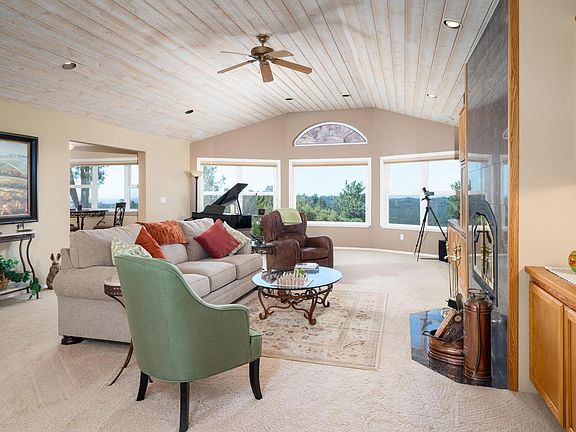 Imagine a place where you feel one with the sky, the soaring birds, towering clouds and vivid sunsets with views as far as the eye can see. A place where the outside and inside merge into one. Welcome to this one of a kind home in beautiful Camino, CA where world famous Apple Hill and Lake Tahoe are just a step away. When you first enter the home you'll be struck with the wide open floor plan and expansive natural light which pours in giving way to an incredible feeling of heartening space. Each room you enter continues this theme revealing breathtaking views from almost every window. And on a clear night take in the dazzling bright stars and far off city lights of Sacramento and Modesto. This 3-4 bedroom 3.5 bath luxury home located in a tranquil gated community also includes a dazzling granite island kitchen with custom pull out cabinet drawers, a built in microwave, double oven, wine refrigerator, & dining bar. Luxurious master suite showcases a jetted tub, stall shower, dual sinks, 2 walk in closets, outside access and more breathtaking views. Downstairs you will find the perfect guest quarters featuring a separate entrance, family room, kitchenette, 2 bedrooms and 2 full bathrooms. The upper and lower levels of the home have their own dedicated heating/air conditioning systems and all full bathrooms include marble floors with Radiant Floor Heat each with independent controls. Enjoy multiple other perks like built in security safe, dual attic fans, generator w/transfer switch, built in music in all upstairs rooms, timer controlled outside lighting, whole house vacuum, two bonus rooms (one currently used for art and one for exercise) and a fenced-in garden area ready for your vegetables. Relax out on the multiple patios or the spacious deck & enjoy spectacular distant views of Weber Reservoir, Placerville Airport and the Sacramento Valley. Schedule a showing soon of this unique home to fully appreciate it's rare beauty.