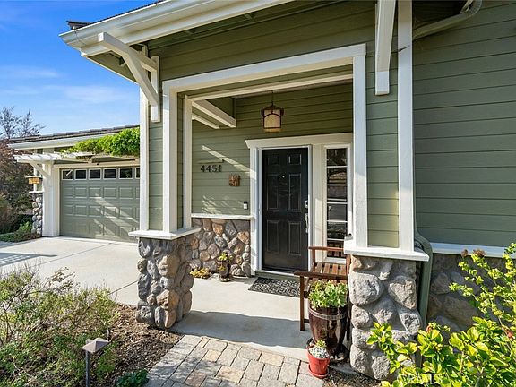 Welcome to 4451 Spanish Oaks, a beautifully maintained home nestled at the base of Islay Hill in scenic San Luis Obispo. From the moment you arrive, you’ll be greeted by a charming front yard, highlighted by low-maintenance landscaping, a curved paver path, and a sitting area with tranquil views of wide-open spaces. Step inside to discover an ideal layout, featuring the primary suite, kitchen, main living area, powder room, and 2-car garage all on the entry level. Recent upgrades include fresh exterior paint and new designer flooring installed in October 2025. The light-filled living room opens to an oversized deck overlooking the serene, wooded area and backyard, creating the perfect space for relaxation, outdoor cooking, and entertaining in the Central Coast’s ideal Mediterranean climate. The kitchen features ample wood cabinetry, granite countertops, a Bosch dishwasher, and a GE Profile built-in gas range, microwave, and oven. The primary suite offers a private retreat with a walk-in closet, double vanity, oversized tiled walk-in shower, and a jetted soaking tub that overlooks the property’s lush greenery. Downstairs, you’ll find three additional bedrooms, two full baths, a dedicated laundry room, ample storage, and a spacious family room ideal for a home theater or game area. Step out from the family room to the improved covered patio and spa area, perfect for outdoor dining and enjoying views of the backyard oasis. The sizable backyard is complete with flowering perennials, deciduous shade trees, a producing Gala apple tree, raised garden beds, an irrigation system, and a decorative tiered fountain. Located in one of San Luis Obispo’s most desirable neighborhoods, this home offers access to tree-lined trails, scenic views, and access to the nearby Islay Park, which features a playground, sports courts, and a baseball field. Enjoy the perfect blend of comfort, style, and natural beauty along Spanish Oaks Drive.