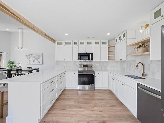 With nearly 1,700 sq ft of beautifully redone living space, this 3 bedroom, 2.5 bathroom CBS townhouse lives large, like a single-family home.Every inch has been reimagined: from a new roof to all-new plumbing throughout the entire place, and a layout that flows with ease. The open living, dining, and kitchen area is full of sunlight with soaring ceilings and tranquil lake views. The kitchen is custom-crafted for both beauty and function, featuring quartz countertops, butcher block shelves, and new appliances, all anchored by a spacious island that invites conversation and connection. The primary suite is tucked away on the main floor with private patio access, a generous walk-in closet, and a spa-inspired renovated bathroom with real wood cabinetry, new toilet, new quartz countertops, and a walk-in shower with new marble like tile that feels like a quiet getaway.