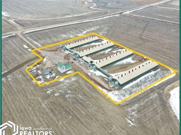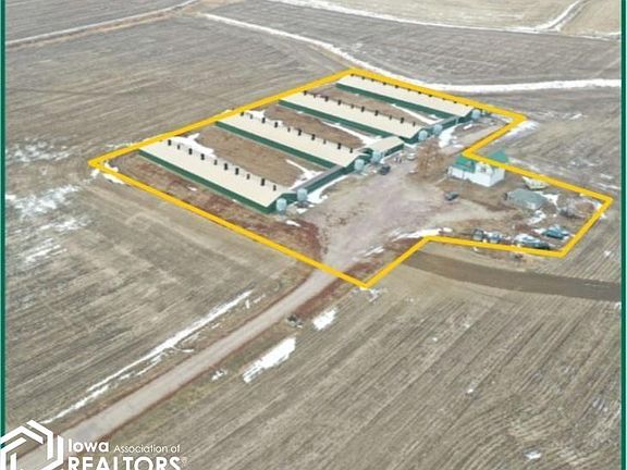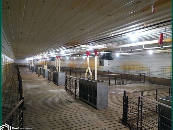 Four, 1,000 head hog finishing buildings built in 1998 located approximately 8 miles south of Remsen, Iowa at 44517 240th St. All barns are 40’ x 200’ with an 8’ pit. The barns are wood-framed with poured concrete stem and fully insulated walls. The site was built in 1998 and remodeled in 2015. A two-story home, built in 1860, is located on the property. The home is 1,980 square feet with five bedrooms and one bathroom. There is an electric heated 48’ x 20’ office. The office offers medication storage, a washer/dryer set, and a bathroom with a shower and sink. All buildings have SKOV thermostatically controlled, ceiling mounted 36” and 24” exhaust chimney fans with actuated ceiling mounted air inlets. There are two, 12-ton feed bins per building. PVC flex auger delivers feed to double sided, SDI stainless steel, wet/dry feeders. Seller has additional hog buildings for sale. See Hertz website and/or contact agent for details. Contact agent with Co-op fee questions.