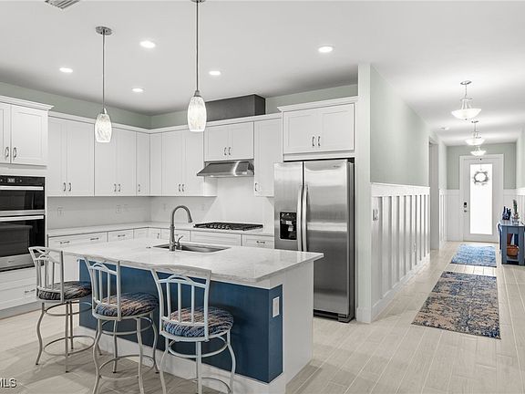 Located in The Regency of Babcock Ranch—the community’s only 55+ neighborhood—this stunning Harcourt model by Toll Brothers offers 3 bedrooms plus a den, 2.5 baths, and 2,272 sq. ft. of luxurious living space. Enjoy a full lake view with beautiful sunrise vistas right from your screened lanai. The home showcases upgraded plank tile flooring throughout (no carpet), impact glass windows and doors, and designer ceiling fans in every room and on the lanai. The spacious open-concept design includes a modern kitchen, elegant dining area, and an inviting great room ideal for entertaining. Additional upgrades include detailed trim work in the primary suite, wainscoting in the entry foyer, a custom built-in bench with coat hangers and storage in the drop zone, and a custom outdoor kitchen (installation scheduled for mid-November). The tandem garage offers extra storage space and features an 8-foot-high garage door—perfect for large vehicles or trucks. This home offers exceptional value—comparable new construction from the builder costs over $35,000 more without these high-end finishes and features. Built less than one year ago, this residence is move-in ready and perfectly positioned for those seeking an active, resort-style lifestyle. Residents of The Regency enjoy an exclusive amenity center featuring a zero-entry heated pool, poolside jacuzzi, tennis and pickleball courts, golf simulator room, fitness studio with daily exercise classes, weight room, locker rooms, and event and yoga lawns—all set against a scenic lakeside backdrop. A full-time lifestyle director curates activities and social events every day of the week, creating an unmatched sense of community. HOA fees conveniently include lawn care and high-speed internet for only $438 per month. Experience maintenance-free living and luxury design in one of Florida’s most vibrant 55+ communities.