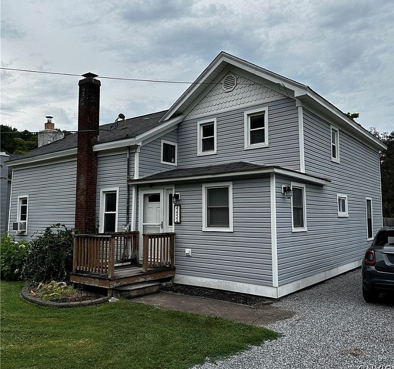 Welcome to Clockville Road! This Vintage Colonial has been eclectically updated to resemble a Stickley Furniture showroom. Enter the front door into the piano parlor. A very cute den... this flows into the main house where the Beautiful Kitchen opens to the formal dining room. The home flaunts Taste and Style with dark counter tops and stainless steel appliances. Modern yet Vintage fixtures that can be controlled via your phone app. Boasting new Vinyl Laminate Flooring throughout. The kitchen opens to the formal dining room providing the open concept that is so sought after nowadays. Leading to back the porch that overlooks the fully fenced in yard boasting lovely trees, plants and a large open flat lawn. Also there is a Large Pantry. The first floor bathroom is totally renovated crisp white with a walk-in Shower. This also accesses The First floor laundry. Now The Living room! Wow it is very spacious with a well appointed fireplace with woodstove insert providing both ambiance and heat. Upstairs there is another full bathroom also completely new. The Masters Bedroom is very large with lounge space. There are two more bedrooms up. Across the road is the Two car garage & Lot.