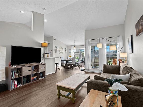 Welcome to this beautifully maintained condo in the highly sought-after Cricket Ridge community! Enjoy fantastic association amenities including an in-ground pool, fitness center, and clubhouse. This 2 bedroom, 2 bath home offers a spacious, open layout with vaulted ceilings, new flooring throughout, and a bright living room that opens to a private balcony, perfect for relaxing or entertaining. The kitchen and dining area flow seamlessly together, creating an inviting space for daily living. Both bedrooms feature generous walk-in closets, and the bathrooms have been tastefully updated with modern finishes. Additional highlights include in-unit laundry, newer kitchen appliances, and a covered carport for your convenience. The association fee covers snow removal, grounds and structural maintenance, and trash service, allowing you to enjoy a truly low-maintenance lifestyle. Don't miss your chance to make this wonderful condo your new home!