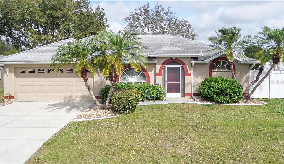 *Multiple Offers, Highest & Best due by Sunday night* Your search is over! This wonderfully, well maintained TURNKEY FURNISHED 2 bedroom, 2 bathroom home on CITY WATER is situated in the heart of North Port & is just waiting on YOU! Wood laminate flooring throughout the main living areas make cleaning easy & pet friendly! Pull up the driveway to be greeted with lush tropical landscaping complete with gorgeous Plumbago flower bushes, Pigmy Palm Trees & river rock. Open the front door to the open and spacious Great Room with high, vaulted ceilings, plant shelves & sunlight beaming through the sunburst front window. The kitchen boasts a window, ceiling fan & an abundance of cabinet & counter space - BONUS - All the appliances are included in the sale! A quaint dining area is the perfect spot to enjoy your morning coffee. The master suite is large in size with sliding glass door access & an en-suite bathroom. The guest bedroom & bath is across the home in the desirable split bedroom floor plan. The bedroom is equipped with a ceiling fan, private closet & large picturesque window overlooking the serene backyard, a great place for viewing Florida's wildlife. The screened in lanai is a great area for relaxing & taking in the gorgeous weather, grilling & entertaining family & friends or watching your children or animals playing out in the fenced in backyard. Located in the perfect neighborhood; right around the corner from Blue Ridge Park which boasts a pavilion, playground and kayak/canoe launch.
