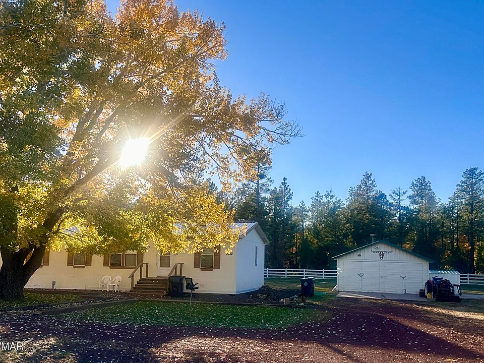 Charming Home on .8 Acres Near Show Low Lake! Enjoy the best of both worlds—peaceful acreage right in the heart of town! This delightful 3-bedroom, 2-bath manufactured home offers 1,404 sq. ft. of comfortable living space on a spacious 0.8-acre lot in Show Low Estates, just moments from Show Low Lake, the hospital, and shopping. The property includes a detached two-car garage full of character, featuring power and a cozy wood-burning stove—perfect for a workshop or hobby space. Mature trees and open space create a private, country feel while keeping you close to all the conveniences of town living. Whether you're looking for a full-time residence, weekend getaway, or investment property, this one has endless potential. Come see this rare in-town acreage opportunity today.
