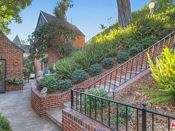 Awash in soft natural light, gathered by brilliant verdant greenscape, city and downtown views, welcomes this 1924 chic Tudor, with its vast grassy yard, and once-in-a-life-time mature landscaping on a premiere coveted LOS FELIZ street. A leafy private entranceway opens to an emotional architectural environment w/ pure period details and craftsmanship; two story entryway, cathedral leaded glass windows, coved ceilings, mahogany doors/frames, wrought iron windows, orig. hardware, Hollywood screens and period grates. 4 Beds 3.5 Baths. Multiple areas to hang out, work from home, and cook in your upgraded kitchen w/ high-end appliances. The lower fourth bedrm/office and media/playroom lead to multi-level decks and patios; a freeing huge yard, ripe for a pool. Direct access from sep. garage, w/ bonus space. Enjoy endless hiking trails and steps LF Village. Beautifully upgraded and meticulously maintained by present owner for 33 years, this is your forever entertainment home. Rare offering.