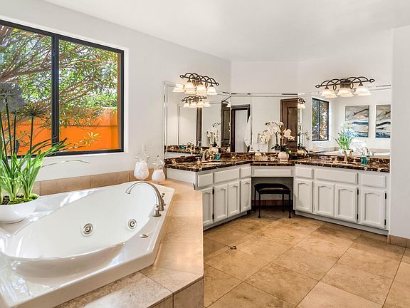 Welcome to the exclusive gated community of Doubletree Canyon! This Mountainside Oasis is the perfect retreat for all lifestyles. Enjoy your own hiking trail to the Preserve just steps from your home. Soaring ceilings & gorgeous mountain views from every room! Designer touches throughout! Kitchen including granite countertops, stainless steel appliances w/double-oven. Spacious Master Suite w/spa-like master bath including double vanity, jetted tub & large walk-in closet, sitting area has gas. Your backyard oasis has sparking pool, spa & play area! Includes gas line so the pool can be heated! A variety of trees just newly just newly planted! Direct access to 300 Acres of Phx Mtn Preserve trails, great for hiking, horse riding and mountain biking riding.