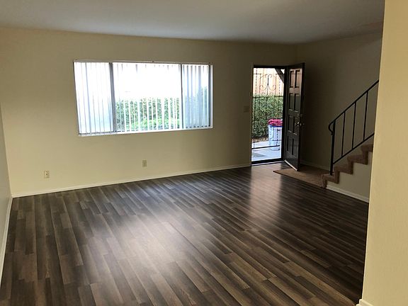 Townhouse style, two story. Freshly remodeled with hardwood flooring, new quartz counters, new carpet, complete new bathroom. There is a half bath down and a full upstairs. Private patio and private two car garage with built cabinets/Storage and assigned parking. Los Alamitos schools.