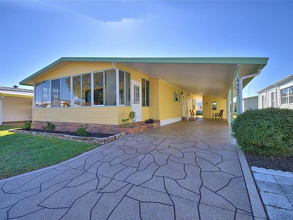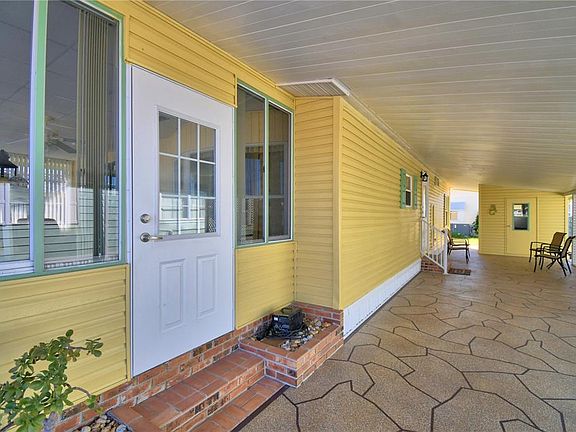 Just pack your bags and move right into this fully furnished and well maintained home. The Seller is leaving everything you need. The front porch adds additional living area and the ceiling has been insulated for energy efficiency. The entry doors have been replaced and a garbage disposal has been installed. The exterior of the home has recently been painted. The antenna is newer and allows reception of many channels without the necessity of internet. The shingled roof is 8 years old and the air conditioner is approximately 10 years old. The golf cart is negotiable. Oakwood Estates, a 55+ community, offers many amenities and opportunities. You can stay as busy as you would like, or just sit back and enjoy the peaceful community.