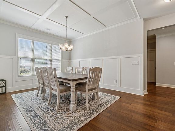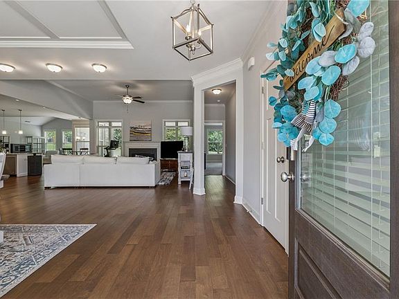 Welcome to this stunning ranch-style home in the highly sought-after Orchard at Mill Creek community, ideally located just minutes from I-85, Chateau Elan, and top-rated Mill Creek schools. This thoughtfully designed residence features 4 spacious bedrooms and 3.5 bathrooms, including a versatile upstairs loft with a full bath, perfect as a fourth bedroom, media room, or home office. The open-concept layout boasts a seamless flow from the elegant dining area with coffered ceilings to the spacious family room and gourmet kitchen. The kitchen showcases granite countertops, stainless steel appliances, a large island, and a cozy keeping room. This home is ideal for entertaining or relaxing with family. Hardwood floors extend throughout the main living areas, with plush carpet in the bedrooms and tile in all bathrooms. The oversized owner’s suite is tucked away for privacy and includes direct access to the covered back patio, a luxurious en-suite bath with double vanities, a tiled shower, soaking tub, and a generous walk-in closet. Two secondary bedrooms share a convenient Jack-and-Jill bathroom on the opposite side of the home. This home also features a stylish mudroom, laundry room with storage, and a side-entry two-car garage. Outside, enjoy the covered patio and level backyard, perfect for outdoor gatherings.