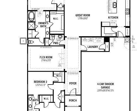 New home ready for move in. Single-story Calrosa floorplan with Craftsman style exterior. This open floor plan features a three bedrooms plus a flex room that can serve as a home office, game room or sitting area. The owner's suite has a spacious walk-in closet and bathroom with two separate vanities, separate tub and tiled shower. The spacious kitchen features stainless steel wall oven with gas cooktop, and a large island with ample sitting space.