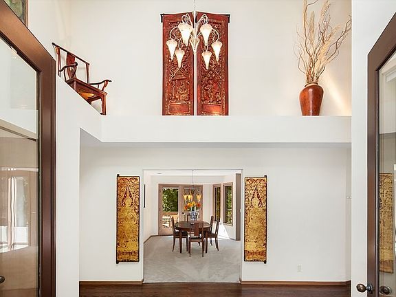 The stunning master suite upstairs includes a luxurious spa bath with a double shower, along with three additional bedrooms. A large home office with its own private entry, a wine cellar, and a versatile nanny suite or potential rental unit downstairs provide ample space and functionality for various needs.