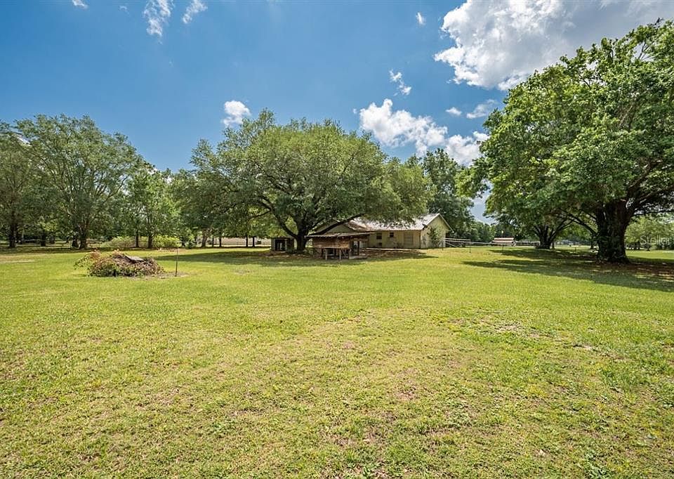 3/2 home located on 2.2 acres with 2 additions on the back of the home. Square footage is 1,418 without additions included. Water softener 1 year old. Metal roof, 8 years old. 53 established Oak trees. 900 foot driveway to the property(county access). Chain link fence back half of property. 35x35x15 tall metal workshop with power and water/ 200 amp service. Irrigation in back for garden. Ceiling fans throughout, 2 are 72 inch. 2 sets of french doors leading to the additions on the back. Updated appliances in kitchen. Wood and tile flooring in living room and kitchen. Bedrooms are carpet. No HOA. Property is private with cameras.