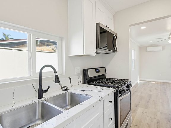 Welcome to 4451 Mentone, a beautifully remodeled 1,250 sq. ft. home located in Loma Portal, bordering Ocean Beach, just one mile from the beach. Renovated in 2025, this amazing Point Loma home features crown molding, modern wood floors, LED pancake recessed lighting, and peak a boo ocean/Bay views from the front porch. The property offers a fenced front yard and a private backyard, is pet-friendly, and includes a stove, refrigerator, washer, and dryer. Perfectly positioned near the beach, pier, surf spots, dog park, cafes, restaurants, diners, bars, breweries, coffee shops, live music, art, and entertainment, this home puts you minutes from Point Loma's social scene and nightlife while remaining centrally located with quick 2-minute access to I-8 East and West. Ideal for a family, couple, or roommates looking to enjoy coastal living with space, style, and convenience in one of San Diego's most desirable neighborhoods.