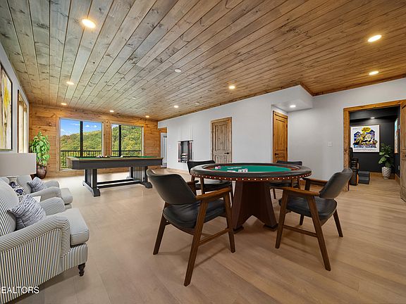 Just Listed! Experience the Smoky Mountains like never before. You have to see this cabin in person before it's gone! This brand-new, breathtaking property boasts the most inspiring and stunning mountain views the Smokies have to offer—hands down! Located in a peaceful, park-like setting, it combines contemporary style with classic mountain charm. Built by an experienced builder with personal use in mind, this home is perfect for short-term rentals, vacation getaways, or family stays. The cabin's spacious 5 sleeping areas consist of 3 bedrooms and 2 bonus rooms which are ideal for a good night's rest. Sleep up to 12 in ultra comfort. 5 full bathrooms will easily accommodate your loved ones and guests. Plus, the projected annual income is around $165,000 —immediate equity potential! This cabin is practically turnkey, and to help you make it your own, the seller is offering a $30,000 furniture allowance. Imagine designing your dream cabin with ease! You'll also appreciate the added convenience of washer and dryer hookups on both the upper and lower levels and covered outlets for added utility. Step inside, and the vaulted loft ceilings will take your breath away. Whether you're looking for peace, privacy, or luxury, this home delivers. The high-end finishes are everywhere, from the custom kitchen cabinets and unique quartzite countertops with a waterfall island to the premium doorknobs and clean, sleek design. This is a STUNNER! For relaxation, you'll have your choice of several options: unwind on the reinforced observation decks, which offer expansive views shared with the exclusive Blackberry Farms resort; indulge in the theater room with a custom wet bar; or de-stress in the steam room equipped with essential oil diffusers for the ultimate spa experience. Looking to relax outdoors? The private picnic area is perfect for enjoying nature, but watch out for the frequent bear traffic—don't leave your burgers unattended! Not only does this property offer a prime location in up-and-coming Wears Valley, but it's also just 30 minutes from Pigeon Forge and Gatlinburg, where you'll find endless shopping, dining, and entertainment options. Natural attractions like Laurel Falls, The Sinks, and Majestic Creek Cascade are just around the corner! Nearly 4,000 sq ft of mountain magic and just shy of 5,000 sq ft total that includes outdoor decks, this cabin offers more than enough space to entertain, relax, and rejuvenate. Privacy, luxury, and quality construction are combined with easy access to the best of the Smokies! Don't miss out—schedule your private showing today before someone else calls this one-in-a-million cabin their own! Drone photography and virtual staging is used in this listing to showcase the full potential of this gorgeous property.