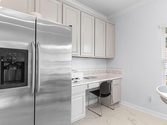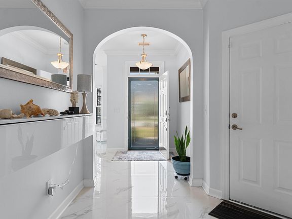 This stunning one-level, 3-bedroom, 2.5-bath home sits beautifully on a corner lot with a 2-car garage, blending timeless charm with modern updates. Elegant archways, crown moulding, and new tile flooring with an anti-fracture membrane flow through the main living areas, creating a bright and inviting atmosphere. The living room is a welcoming centerpiece with a cozy corner fireplace and a striking propeller-style ceiling fan that adds contemporary flair. The formal dining room, detailed with classic wainscoting, is perfect for intimate dinners or festive gatherings. The brand-new kitchen is a chef’s dream, featuring two-tone cabinetry in soft neutral tones, a coordinating backsplash, new countertops, new flooring, and a center island. A breakfast nook, built-in desk, and large walk-in pantry provide both functionality and style, while stainless steel appliances make everyday cooking a breeze. A dedicated laundry room with a reverse osmosis water system adds convenience and efficiency to daily routines. The primary suite is a serene retreat, complete with a tray ceiling, LVT flooring, dual walk-in closets, and a spa-like en suite with dual sinks and a walk-in shower. Bedrooms two and three also feature LVT flooring, and the fully updated hall bath offers comfort-height countertops and a walk-in shower, perfectly designed for ease and comfort—no carpet throughout the home. A peaceful Carolina room, currently used as a yoga and meditation space, invites relaxation and can easily serve as a bonus room, office, or quiet retreat. The screened-in porch provides an additional space to enjoy morning coffee or evening sunsets, making indoor-outdoor living effortless. Additional highlights include hurricane shutters, mature landscaping with curbscape edging, and a security system. Clear Pond residents enjoy resort-style amenities, including multiple pools, a clubhouse, fitness center, and playgrounds—making this move-in ready home the perfect combination of comfort, style, and lifestyle.