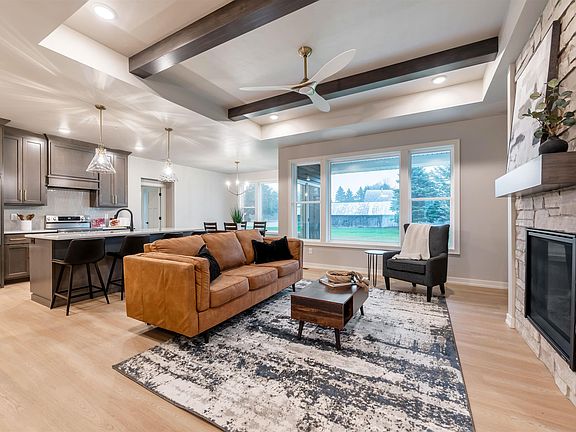 2025 Showcase Home! Stunning ranch close to schools, shopping & scenic walking trail. Step inside & you are greeted by a warm & spacious Great Room where the stone flr-to-clg FP creates an inviting atmosphere perfect for cozy nights. Kitchen features a center island that invites casual dining & entertaining w/quartz countertops, stylish tile backsplash & pantry. Retreat to the primary BR, a sanctuary that boasts a tray ceiling & generous wk-in closet. The adjoining primary bath offers dual sinks & tile wk-in shower perfect for unwinding after a long day. Step outside to a covered porch off the dining area where you can enjoy your morning coffee or entertain friends. LL stubbed for bath for future additional space. This home truly checks all the boxes for comfort & style. 11/20/25 complete