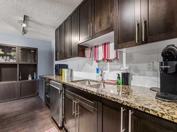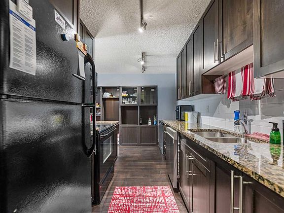 Features include. Black appliances, granite counter tops, shaker style espresso maple cabinets, engineered hardwood flooring with carpeting the bedroom, in-suite laundry ,in-suite storage,. Balcony off living room with west exposure. Call your Realtor to show.