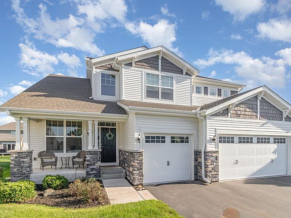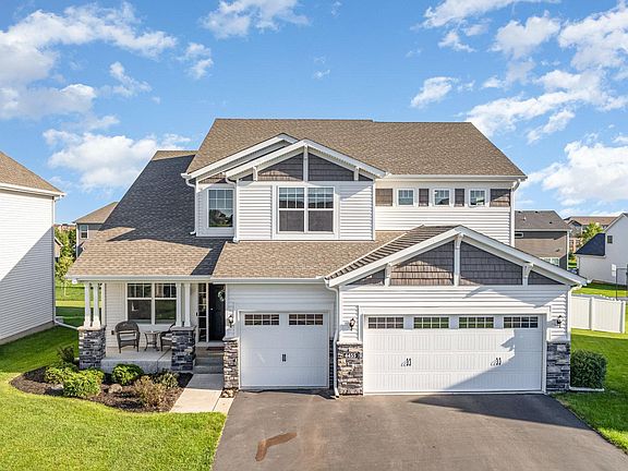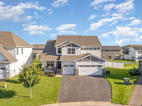 Come see this nearly new well cared for home with a sought after quiet cul-de-sac location. The open main level features an expansive kitchen with a large center island, great for quick meals or a buffet for football games and family gatherings. The sunroom is a flexible space which can be used as an informal dining area or an additional sitting space to enjoy. The mudroom has built-in lockers for storage and a huge walk-in closet for coats and sports equipment. The main level also features a formal living & dining room, a large great room and a convenient home office. The upper level has a huge primary suite with a luxurious bath and big walk-in closet, 3 additional bedrooms, a convenient upper level laundry room and loft area. The lower level is designed for entertaining, there is a home theatre, an area for a pool table or other gaming, a rough-in for a kitchenette or wet bar, & still space for exercise equipment. The lower level 5th bedroom and bath makes for a great guest space for friends and family. The yard is huge and surrounded by a maintenance free privacy fence, there’s plenty of space for kids, pets, yard games and/or a garden. The maintenance free deck was designed with Arborvitae trees around it for added privacy while you enjoy BBQs with family and friends. The home has 4600+ sq ft & has upgrades like dual zone HVAC for a comfortable house & energy savings, ethernet connections in many rooms, a sound system throughout the home, a battery back-up for the sump pump and much more.. The home is located close to Bielenberg Sports Complex & East Ridge High School, walking distance to shopping and has easy access to Saint Paul & airport.