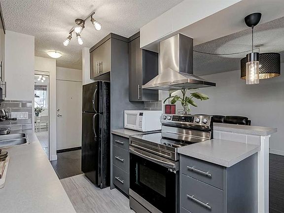 Welcome to this wonderful 2 bedroom, 1 bathroom home in the central Calgary community of Greenview. This ground floor unit truly has it all. As you enter, you are greeted with wood floors leading you into your open floor plan. The living room is large and opens to your north facing balcony as well as your dining room. Your renovated kitchen includes upgraded appliances, tons of cabinets for storage, great counter space, and an eat up bar, perfect for entertaining or quite nights at home with the family. The primary bedroom is massive, large enough for a king size bed and all accompanying furniture as well as a good size closet. The second bedroom is also a great size with a large closet and is just across from your fully renovated bathroom with a beautiful vanity, tile tub surround and a picture mirror. Your in suite FULL SIZE laundry in your storage room completes this perfect condo in one of Calgary's most central locations. Greenview has great schools, shopping nearby, minutes to Nose Hill with great walking/hiking/biking trails, great access to downtown and the airport. Do not miss out on your opportunity to own this home!