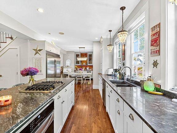 Built in 2015, this residence offers a sophisticated blend of modern design and timeless comfort. The main living area showcases soaring 10ft ceilings, expansive windows, custom built-in cabinets/shelving and a gas fireplace, seamlessly connected to a chef-inspired kitchen finished with striking Tahsis blue marble countertops, a massive fridge, custom bar built-ins, and integrated laundry and recycling systems. A dedicated media room, enhanced with 7.5 surround sound, double sound insulation, and outdoor speakers, creates an elevated entertainment experience. Designer light fixtures and refined finishes add a touch of elegance throughout. Outdoors, the property features a beautifully landscaped yard, complete with irrigation, an outdoor fireplace, and a garden shed. A heat pump, insulated 4-ft crawl space, and efficient systems ensure year-round comfort. Ideally situated close to the river, breweries, and local amenities. This home is a show stopper and must see listing!