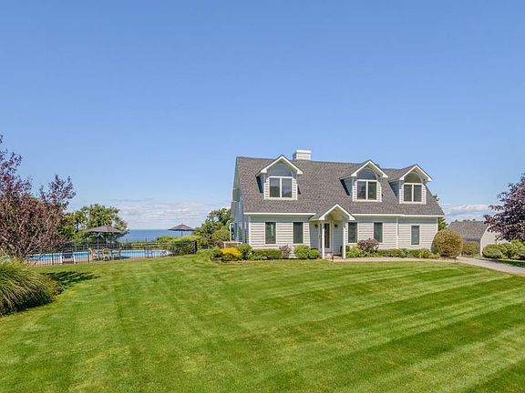 Cutchogue - Set on a bluff on coveted Oregon Road and overlooking the Long Island Sound, a rare offering of one of the most beautiful and private waterfront estates on the North Fork. Sold only in its entirety, it is comprised of an elegant waterfront home and pool on 10+- acres adjacent to 26+ preserved acres planted with varietal vines, and an additional three waterfront parcels totaling approximately 110 acres with development rights intact. . The home offers water views from all rooms, three bedrooms and three full baths including an expansive master suite, a gracious living room with fireplace, formal dining room, kitchen with breakfast area, and a high-ceilinged sunroom opening to multiple decks overlooking the pool, a broad lawn and the Long Island Sound beyond. With 1380+- feet of beach this is a truly majestic 146.5+- acres estate in an exquisite natural setting.