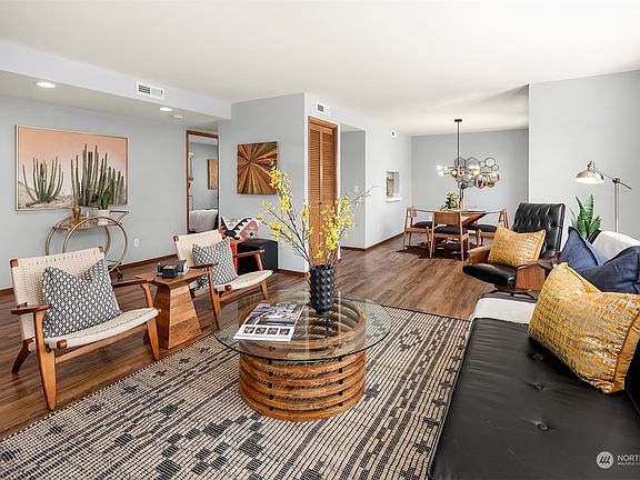 Welcome to this stunning and stylish West Seattle condo in a completely renovated building, just minutes away from all the Junction has to offer-shops, restaurants, nightlife, and more! This recently updated condo offers a spacious living room flooded with natural light & peekaboo Sound views. Modern updates include fresh paint, new lighting, updated flooring, a tankless water heater & stainless appliances. Enjoy central A/C & high-efficiency heating or lounge on your balcony and enjoy the views. The primary suite easily accommodates a King bed & includes a Juliet Balcony & double closets. Secure garage parking & an elevator allow for zero-stair entry. Incredible walkability & easy access to public transit. You don't want to miss this one!