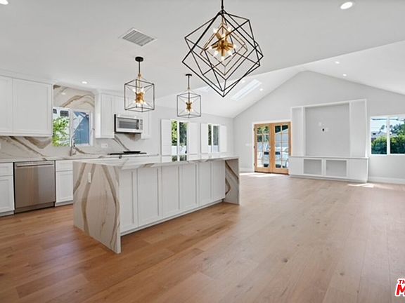 Welcome to this beautifully renovated 4-bedroom, 3-bathroom residence, where timeless elegance meets modern comfort in the heart of the coveted "Library Square" neighborhood of Sherman Oaks. Set on a beautiful tree-lined street this home is bathed in natural light and freshly painted throughout, creating a bright and inviting atmosphere. As you enter, you're welcomed by a living room that seamlessly flows into a spacious dining area perfect for hosting family and friends. The chef's kitchen is a true showstopper, boasting classic shaker cabinetry, a spacious center island with breakfast bar, soft-close drawers, ample counter space, pantry and sleek stainless-steel appliances. The kitchen and dining area open into a family room with vaulted ceilings and French doors that lead to a lush, gated backyard ideal for California indoor-outdoor living. The primary suite offers a serene retreat with a stylishly updated en-suite bathroom; there is a second ensuite bedroom and two additional bedrooms that share a beautifully designed bathroom with a tub and double vanity. Additional highlights include: Central air and heat, Recessed lighting, modern fixtures, plantation shutters, Wood-style laminate flooring throughout, and washer/dryer in the private garage. The gated front yard and backyard are a gardener's delight, adorned with vibrant blooms. Sustainable landscaping enhances both beauty and eco-friendliness. A private, detached 2-car garage (No ADU). Enjoy the unbeatable location just moments from Trader Joe's, Westfield Fashion Square Mall, top-rated schools, and convenient freeway access. With its charming curb appeal, lighted front porch, and thoughtfully curated interior, this home is a true gem ready to welcome you in.