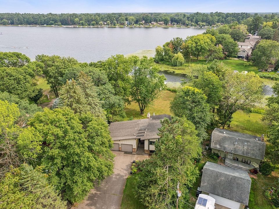Ultimate lake shore living! This Gorgeous Mid-Century Modern home on highly sought after Coon Lake. Brick patio with access to your own 125’ Of private shoreline/dock. This home is located just 40 minutes from downtown Minneapolis/St Paul and is the perfect family setting. Charming 3+BR, 2+BA with 4th non- conforming BR. From the covered/vaulted/skylighted entryway through unique front door & cool glass onto the large, slate tiled foyer, open two-story staircase. Remodeled gourmet kitchen with quartz counter tops, breakfast bar overlooks lake, SS appliances. Large Master BR has large closet and passthrough full BA w/newly tiled shower/glass door & built-in make-up table! 2 gas fireplaces, new carpeting, and a freshly painted wall throughout. Vaulted ceilings, wood beams, beautiful wood accent wall surrounds the gas fireplace gives this space a timeless look. A huge deck includes teak table/chairs which fit in the octagon shape perfectly. Come view this fantastic home for yourself!