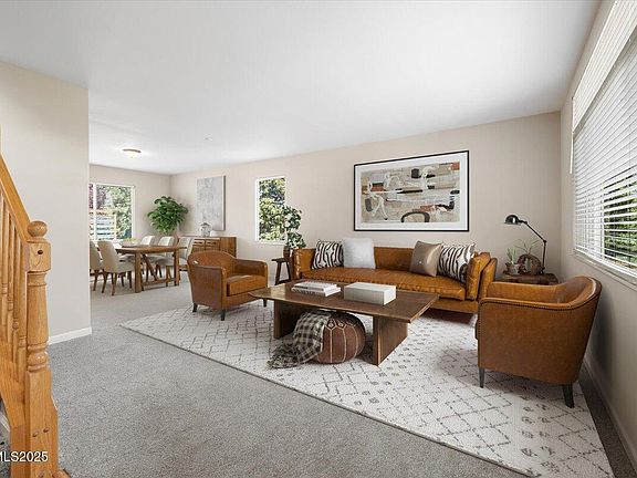 Premier location in Rolling Hills! Freshly painted with newer carpet. Adjacent to a rare 9.5 acres of non-buildable agricultural land, the backyard enjoys both immense privacy and glorious unobstructed mountain views. The inviting floorplan includes a blended Formal Living and Dining area, Kitchen, Great Room, Guest Bedroom, Full Bath, and Laundry all on the first floor. The open and airy upstairs features the Primary Suite, three Guest Bedrooms (one currently utilized as a Hobby Room), Full Bath, plus a tremendous Bonus Room with endless flex space options. The Kitchen features newer dual ovens and granite countertops. The fully-fenced backyard welcomes relaxation and entertainment with a hot tub, several garden beds, and numerous fruit-producing plum, pear, apple, peach and blackberry bushes. Home resides in a simplified, no-fuss Landscape Maintenance Association. Conveniently located to local schools, shopping and dining amenities, and easy-breezy access to the Reno-Tahoe International Airport (20 minutes), Mount Rose Ski Resort (20 minutes), and a short 30-minute drive to scenic Lake Tahoe. Excellent opportunity to reside in the heart of South Suburban Reno!