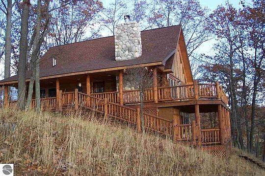 Beautiful full log home with fantastic view of all purpose Stylus Lake. Home has log interior and sports a stone fireplace, large sleeping loft together with a finished family room plus a bedroom and bath in the walk-out basement. 81'x360' wooded lot has a steel sea wall with an extra lot available to purchase with home for an additional 59,900. Privacy and seclusion that doesn't come with many all-sport lakes. A must see.