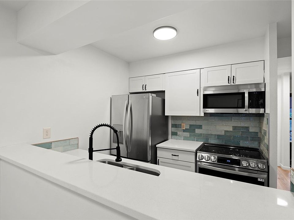 Contemporary light fixturesNew paintCustom tile workStainless steel appliancesSpacious bedroomsKitchen with quartz countertopsInviting layout