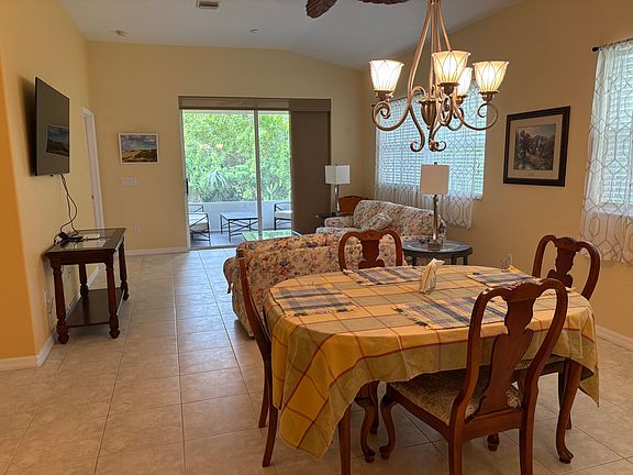 Welcome to the beautiful gated community of Venetia, where your 2025-2026 fall and winter vacation home awaits your arrival. This quaint two-bedroom, two-bathroom townhouse has a den and attached garage. The kitchen provides everything you need to make gourmet meals for family and friends. Part of the kitchen is a breakfast nook where you can sip your morning coffee or catch a quick bite to eat. A comfortable living and dining area is right around the corner, and sliding glass doors lead you to a screened-in lanai and a green backyard space. The primary bedroom boasts an en suite bathroom and plenty of closet space. The second bedroom and bathroom are perfect for your overnight guests. And don't forget a garage to park your vehicle in. The Venetia community has a lot to offer its residents. A community pool and hot tub, a beautiful clubhouse, and tennis, pickleball, bocce, basketball, and shuffleboard courts. **Please note, this is a 3 - month rental.