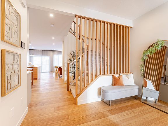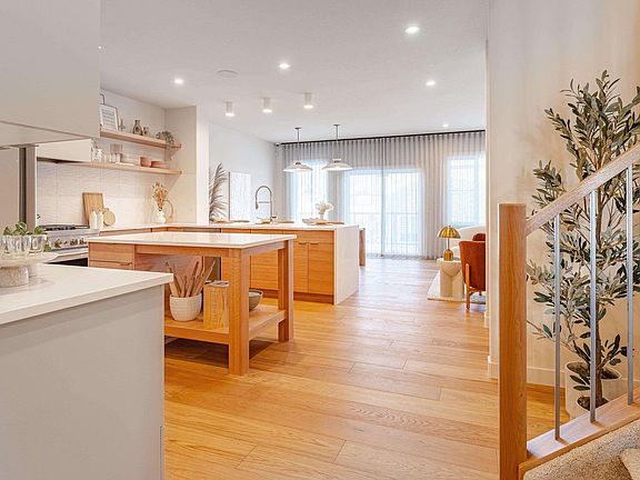 Former Coventry Homes Showhome — a place that feels like home the moment you walk in. Warm wood details and 9’ ceilings on both the main floor and basement create a sense of space and sophistication from the start. The kitchen is the heart of the home, featuring stainless steel appliances, a gas stove, elegant two-tone cabinetry, tile backsplash, and quartz counters with a waterfall edge—all centered around an inviting island made for gathering. The open dining area flows seamlessly into a cozy living room with a beautiful fireplace, perfect for quiet nights or lively get-togethers. Upstairs, a raised-ceiling bonus room offers space to relax, while the primary suite feels like a retreat with its 5-piece ensuite—soaker tub, glass shower, dual sinks, and walk-in closet. Two more bedrooms, main bath, and laundry complete the level. The finished basement adds a family room, 4th bedroom, and 3-piece bath. Outside, enjoy a fully landscaped yard, deck, and double attached garage