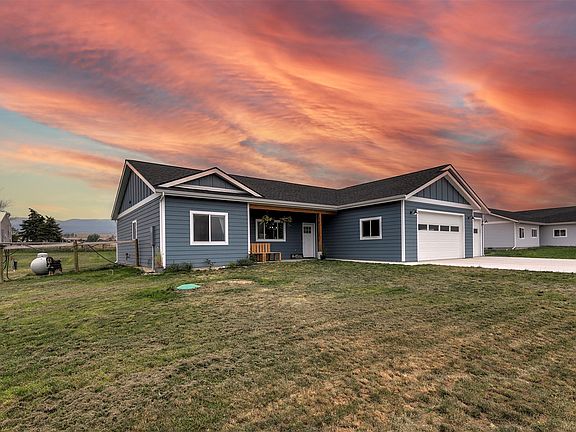 Welcome to your Montana retreat in the heart of the beautiful Bitterroot Valley! Built in 2022, this immaculate 3-bedroom, 2-bath home offers 1,724 sq ft of thoughtfully designed living space on a spacious 1.2-acre lot. Enjoy the perfect blend of comfort and style with upgraded lighting fixtures throughout and a cozy built-in electric fireplace that creates an inviting focal point in the open concept living area. The kitchen features contemporary finishes, ample counter space, and flows seamlessly into the dining and living rooms making it ideal for entertaining or relaxing with family. The primary suite is a private haven with a walk-in closet and en-suite bath. Two additional bedrooms provide flexibility for guests, a home office, or hobbies. Step outside to a fully fenced backyard which is perfect for pets, gatherings, or simply enjoying Montana’s natural beauty. It includes ample pressurized irrigation water which is separate from your well. The 3 car garage offers plenty of space for vehicles, storage, or your outdoor gear. Located just minutes from charming downtown's, hiking trails, and fishing on the Bitterroot River, this property offers the best of rural living with modern amenities and beautiful views of the Bitterroot mountains. Don’t miss your opportunity to check out this wonderful home.