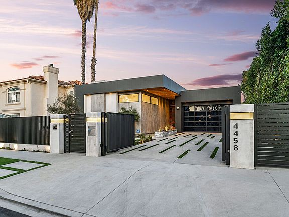 FULLY FURNISHED AND AVAILABLE FOR LONG OR SHORT TERM. Artfully designed SINGLE STORY home with exquisite material and quality in a prime location. Welcome to this luxurious Newer Construction 2016 home in the heart of Sherman Oaks masterfully laid~out by local architects to reflect modern California indoor-outdoor living..~ 4458 Mammoth features an open space single level floor plan with 4 oversized bedrooms and 4.5 baths and luxurious finishes throughout. Those finishes and features include tons of natural light, beautiful recessed lighting throughout, skylights in the elegant entryway and master, custom cabinetry finishes, a redone higher end kitchen island, porcelain tile throughout, and Large electric Fleetwood doors that open automatically with a press of a button to a beautifully redone deck & pool. Cozy fireplaces in Master bedroom, Living Room, Guest House, and an outdoor fire pit to top it all. This home was built with all the tech use in mind, you will find the RTI Home Automation system that controls music throughout the house, doorbird gate system installed for privacy and peace of mind, a full outdoor security camera system, and much more. Each ensuite room has a resort style feel with heating on the bathroom floors and tons of closet space. The elegant master bedroom features an enormous walk-in closet & a contemporary fireplace which leads to the Master bathroom which spoils with a large double rain shower, double vanities that any couple will love & heated floors. The home comes with a gourmet kitchen with a gorgeous redone center island, stainless steel appliances, a large walk in pantry & a cooled wine cellar. Electric floor to ceiling glass sliders, open by themselves with a press of a button to lead you out to lush landscaping sparkling pool and~lounge area, and~sleek decking~for entertaining.~ In addition there is a guest house with 1 bedroom/1 bathroom that includes a kitchen, fireplace, and living area. Beautifully newly installed wood floors give the guest house a warm cozy feeing. A perfect in-law set up, extended family, or airbnb/additional income opportunity.~ Close to the Sherman Oaks fashion square, great schools, fine dining, and more. Square footage includes garage.