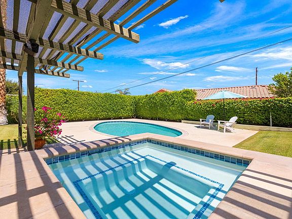 Perfectly located just minutes from world-class shopping and dining on El Paseo, Palm Desert Civic Center Park, and local schools, this move-in ready home blends timeless character with modern convenience, an ideal retreat for enjoying the Palm Desert lifestyle. This midcentury gem offers 3 bedrooms, 2 bathrooms, and 1,655 square feet of stylishly updated living space on a spacious 9,148 square foot lot. Designed for both comfort and entertaining, the home features a fully renovated kitchen with custom cabinetry, quartz countertops, and modern appliances, along with an updated primary bath. Throughout the home you'll find refinished Saltillo tile floors, fresh paint, LED lighting, and custom wood shutters, complemented by a beautifully remodeled stacked-stone fireplace. Major system upgrades include a new HVAC with energy-efficient ductwork, new water heater, and updated electrical outlets. Outdoors, your private resort awaits with a replastered pool and spa equipped with energy-saving variable speed motors, upgraded landscape lighting, outdoor TV and speakers, and mature landscaping. A custom backyard shed and new concrete driveway and walkways add the finishing touches. Call us today to schedule your private showing and experience it for yourself!